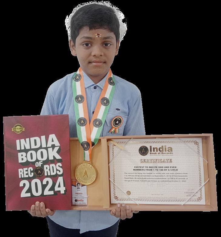 The record for being the fastest to recite odd and even numbers from 1 to 100 was set by Jeevash (born on September 5, 2014) of Tiruvannamalai, Tamil Nadu. He recited odd and even numbers from 1 to 100 in 43 seconds, at the age of 10 years, 1 month and 16 days, October 21, 2024.