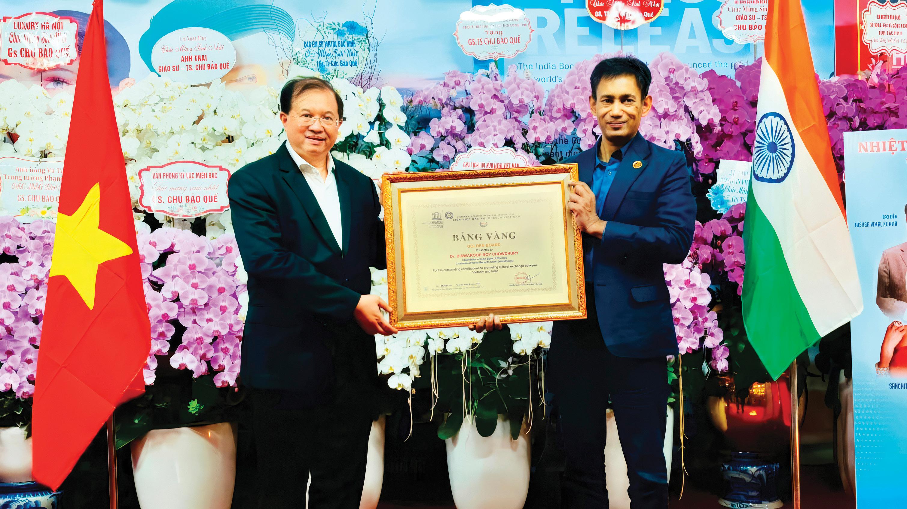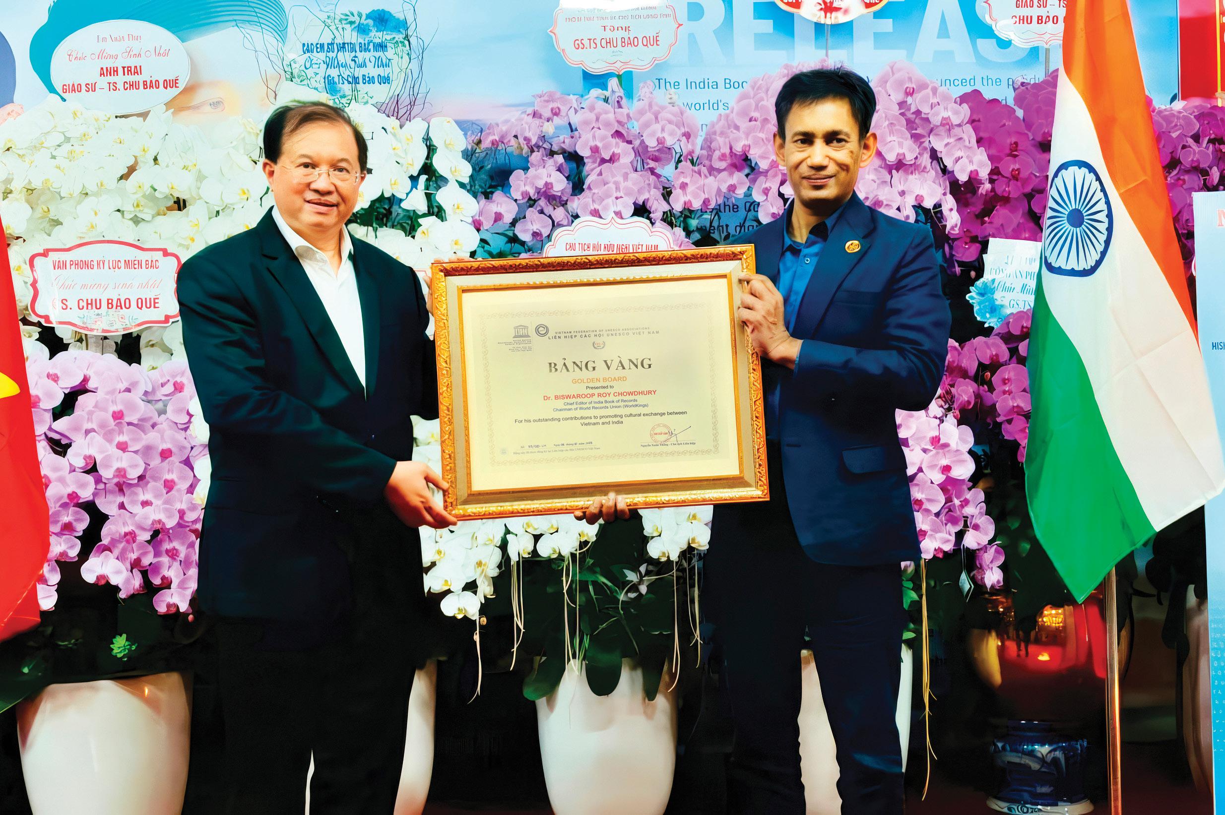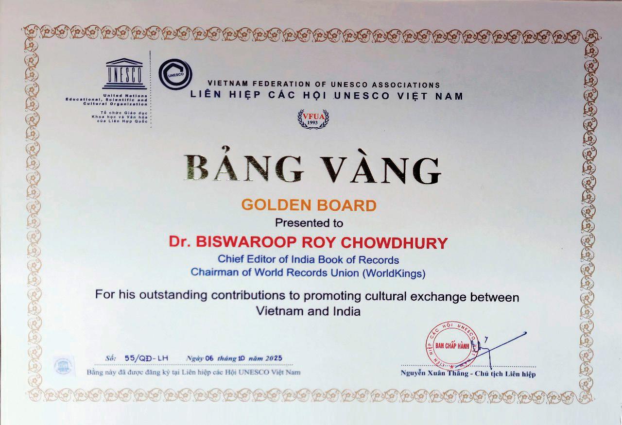 In a historic celebration of cultural harmony, Dr. Biswaroop Roy Chowdhury received UNESCO’s Golden Board Award in Hanoi, honouring his outstanding efforts in deepening the cultural bridge between India and Vietnam.
