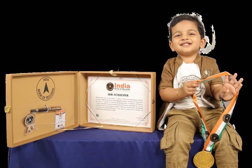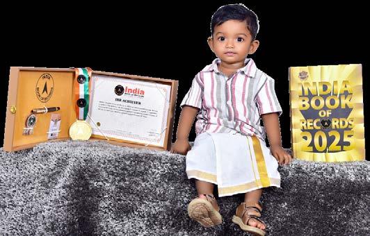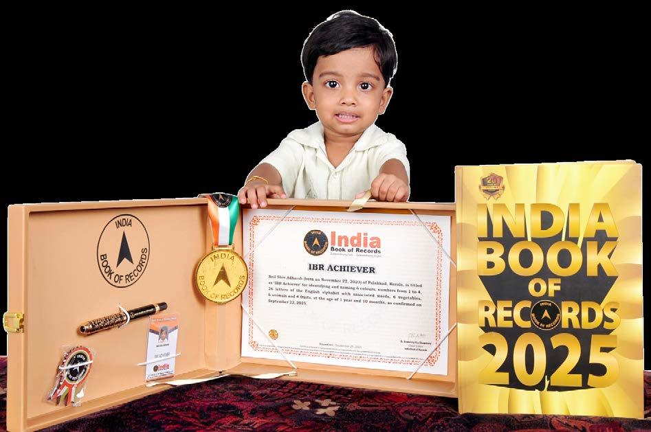 Akhwin Narayan (born on March 5, 2024) of Thiruvananthapuram, Kerala, is titled as ‘IBR Achiever’ for identifying 5 vehicles, 5 animals, 3 vegetables, 4 parts of the body, 12 miscellaneous pictures and playing cricket indoors, at the age of 1 year and 7 months, as confirmed on October 10, 2025.