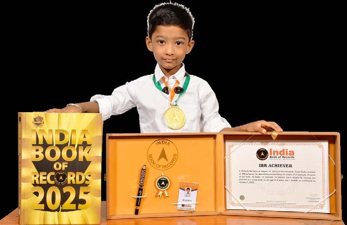 V. Rithvik Sai (born on August 14, 2021) of Thoothukudi, Tamil Nadu, is titled as ‘IBR Achiever’ for identifying and recalling the names of 17 animals, 15 parts of the body, 12 fruits, 12 vehicles, 10 colours and 6 shapes by viewing the pictures in a scrap book, at the age of 4 years and 1 month, as confirmed on October 7, 2025.