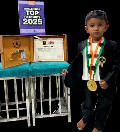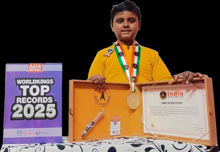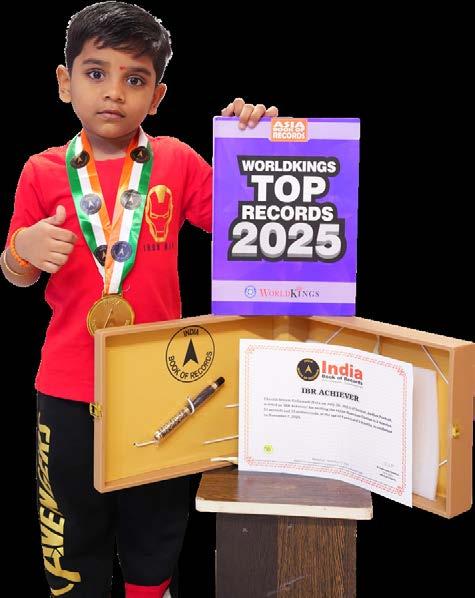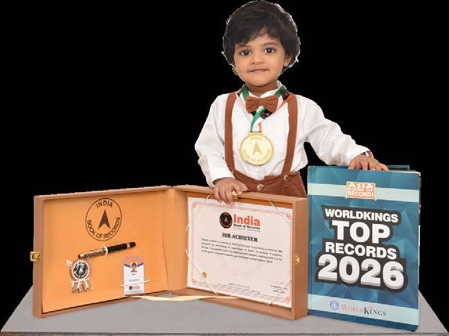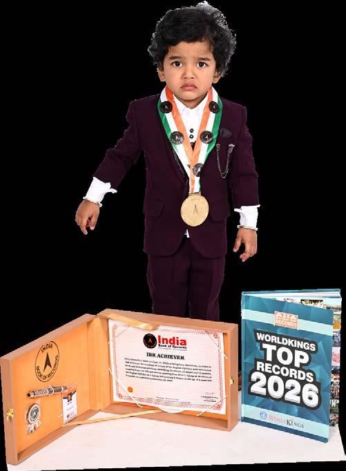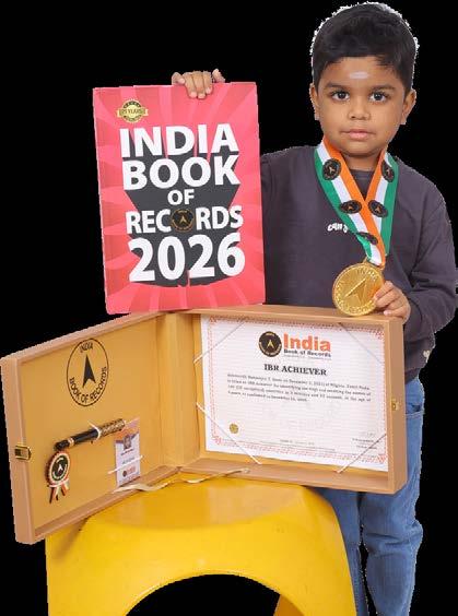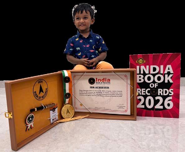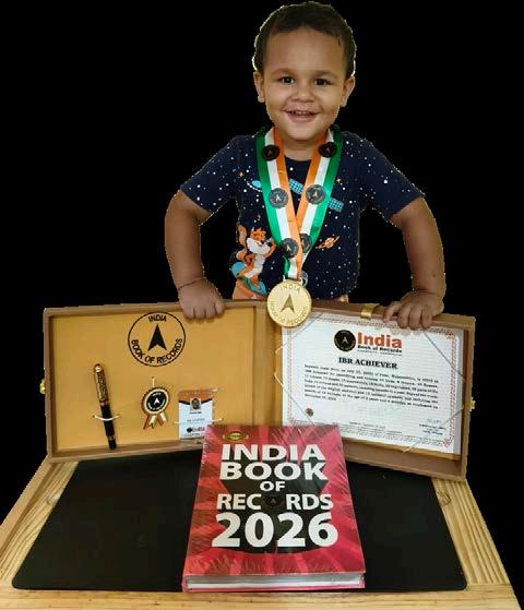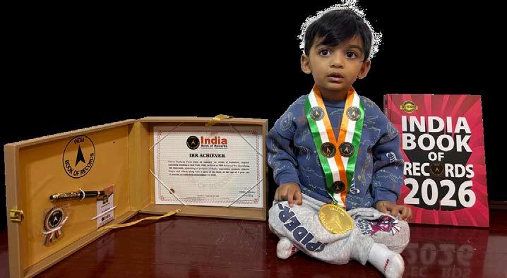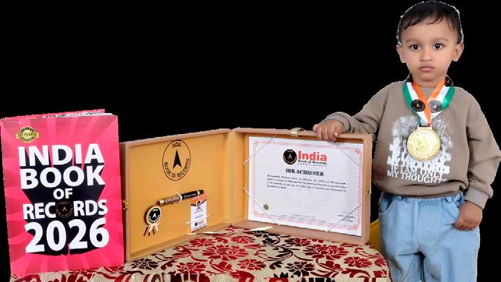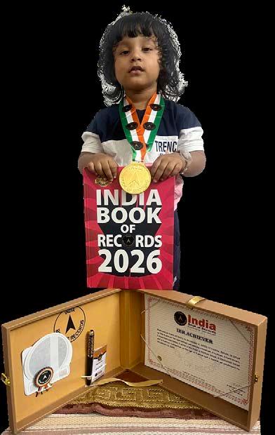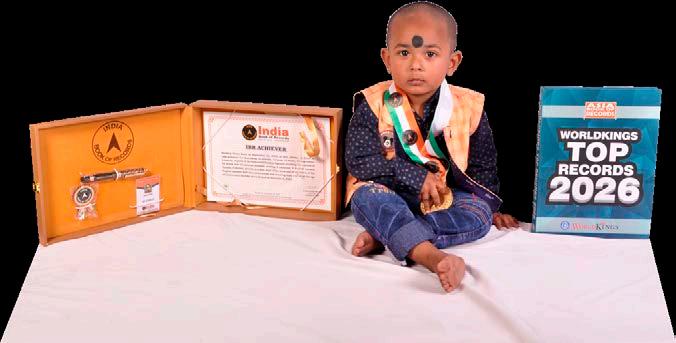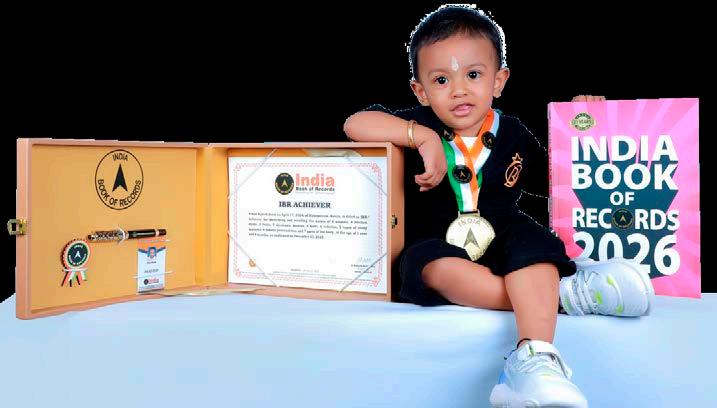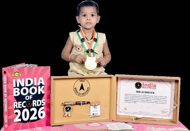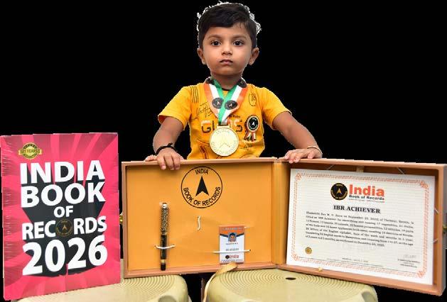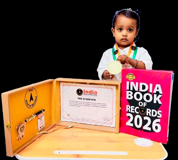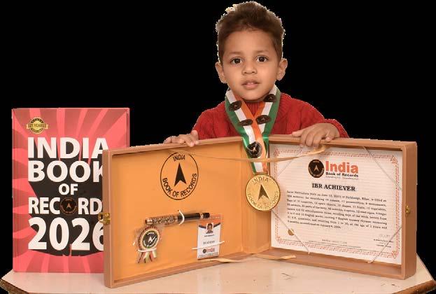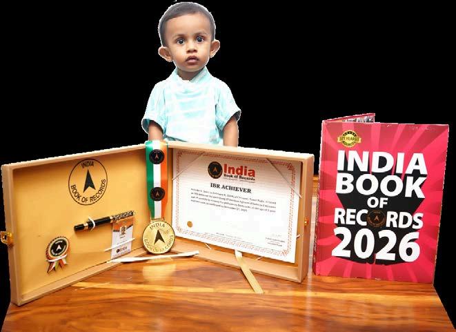 Avyaansh Ashwin (born on April 1, 2023) of Mayurbhanj, Odisha, is titled as ‘IBR Achiever’ for identifying and naming 5 vegetables, 7 birds, 8 fruits, 10 colours, 12 parts of the body, 20 phonic sounds, 21 vehicles and 28 animals; recalling 26 letters of the English counting from 1 to 20, at the age of 2 years and 7 months, as confirmed on November 8, 2025.
