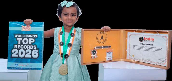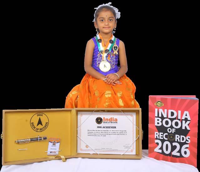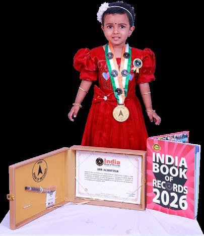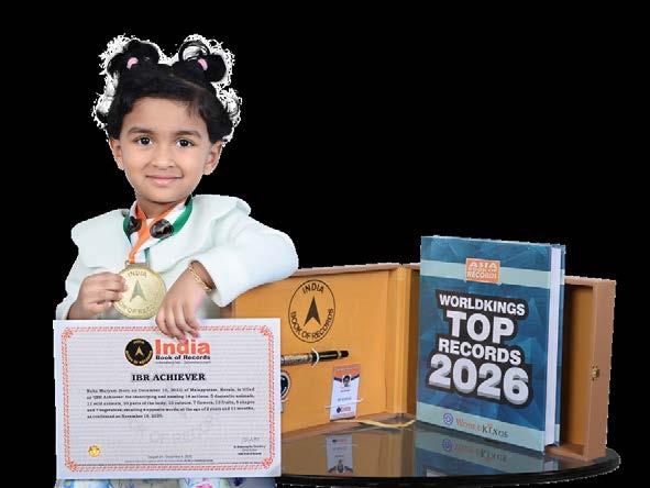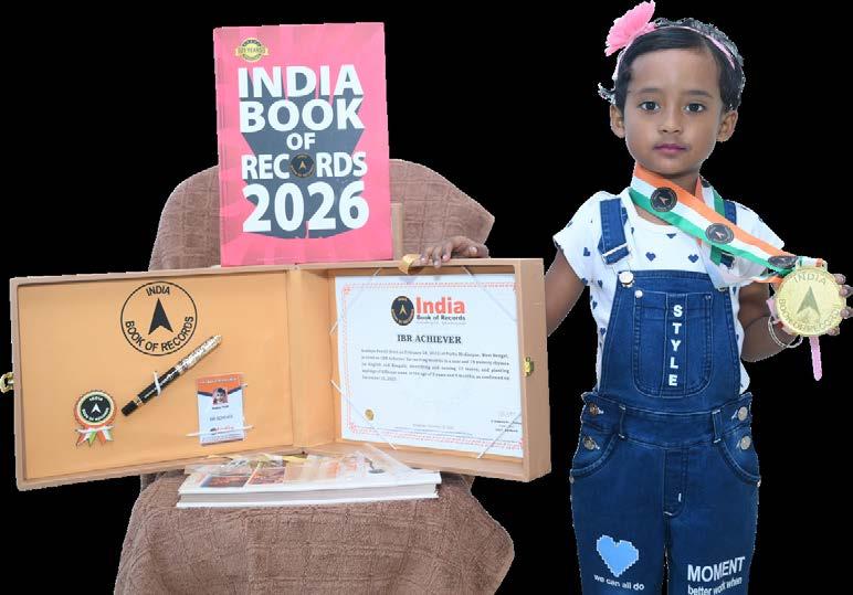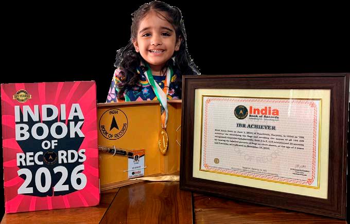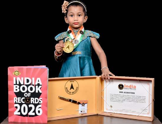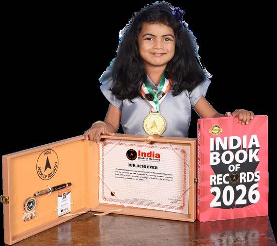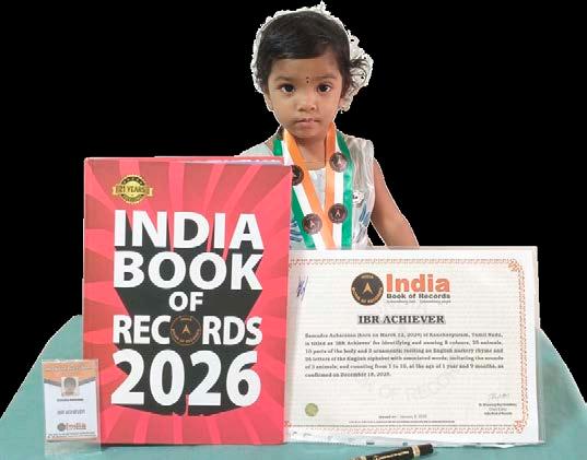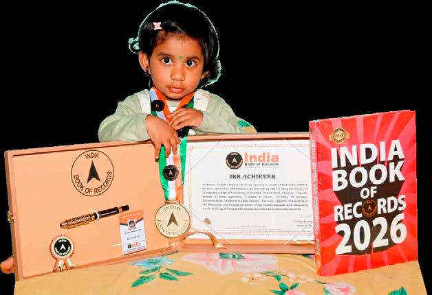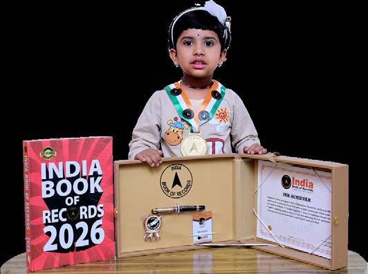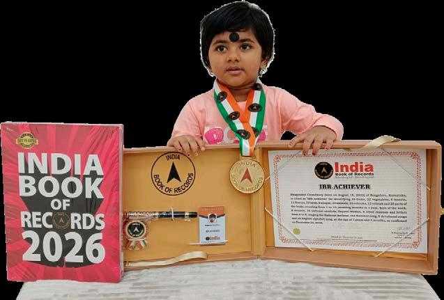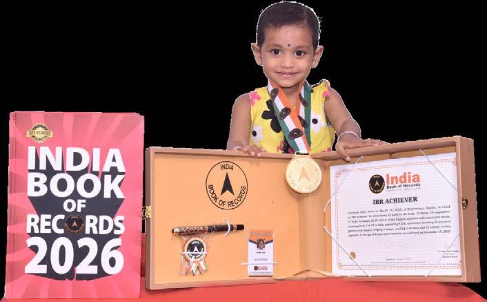 Ariyana Meher (born on June 12, 2023) of Nuapada, Odisha, is titled as ‘IBR Achiever’ for identifying and naming 20 animals, 21 vegetables, 18 vehicles, 19 fruits, 12 deities and 6 colours; counting from 1 to 10; recalling 5 national symbols, months in a year and days of the week; reciting 3 mantras; and singing the National Anthem, at the age of 2 years and 6 months, as confirmed on December 19, 2025.