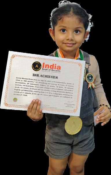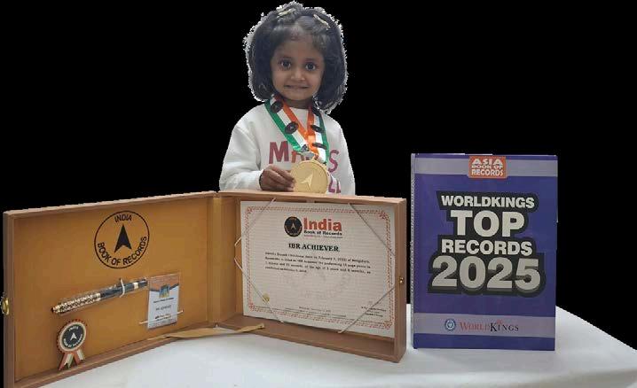 S.P. Lara Parvati (born on August 17, 2022) of Tiruvallur, Tamil Nadu, is titled as ‘IBR Achiever’ for completing 15 worksheets on different topics, including vehicles, animals, pattern, colours, shadow matching and others in 15 minutes and 35 seconds, at the age of 2 years and 11 months, as confirmed on