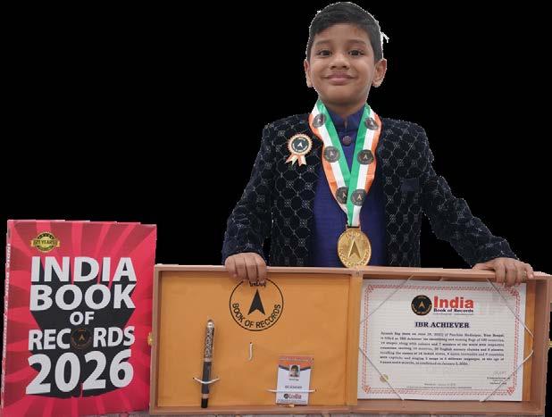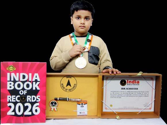 Ayansh Bag (born on June 25, 2021) of Paschim Medinipur, West Bengal, is titled as ‘IBR Achiever’ for identifying and naming flags of 100 countries, 19 shapes along with colours and 7 wonders of the world with respective countries; reciting 10 mantras, 30 English nursery rhymes and 8 planets; recalling the names of 28 Indian states, 8 union territories and 9 countries with capitals; and singing 5 songs in 5 different languages, at the age of 4 years and 6 months, as confirmed on January 2, 2026.