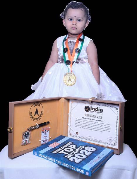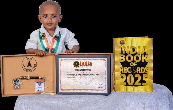 Thanvik P. (born on February 3, 2024) of Palakkad, Kerala, is titled as ‘IBR Achiever’ for walking a distance of 50 metres in 1 minute and 4 seconds, at the age of 1 year and 6 months, as confirmed on August 19, 2025.