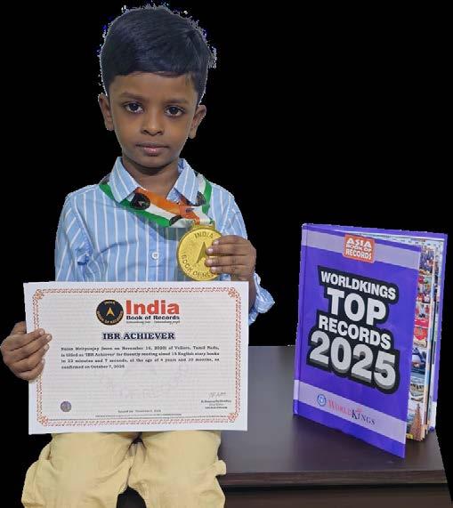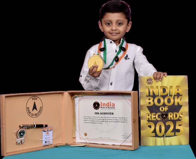 RJ. Devamithran (born on December 23, 2020) of Sivaganga, Tamil Nadu, is titled as ‘IBR Achiever’ for recalling the names of 8 planets from the position of the sun and in reverse order, along with the colours of the planets; answering 12 G.K. questions; and counting from 1 to 20 in reverse order, at the age of 5 years, as confirmed on December 24, 2025.