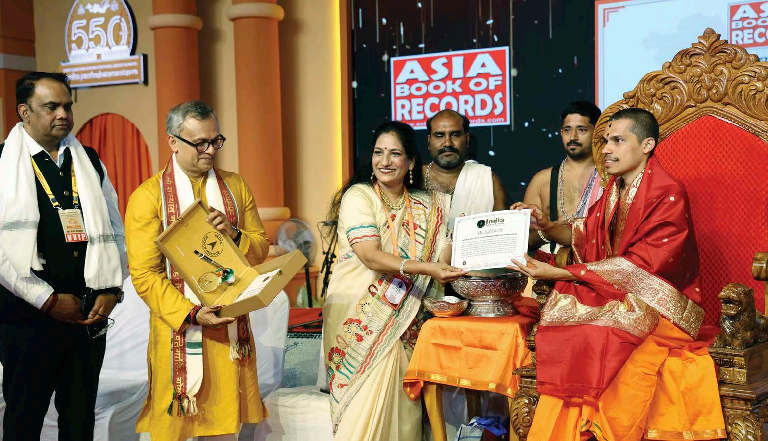 Closer home, 475 participants in Dehradun performed 32 yoga asanas in unison. Sushil Reddy drove 10,027 km to promote electric mobility awareness. ABTMM distributed 21,000 oral hygiene kits to children. In Guwahati, Manoj Das sang 53 Kishore Kumar songs.