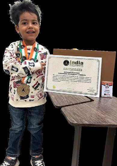 Kirat Arora (born on June 2, 2022) of Panchkula, Haryana, is titled as ‘IBR Achiever’ for identifying the flags and recalling the names of all 195 (UN recognised) countries alphabetically, from A to Z, in 8 minutes and 20 seconds by viewing the labelled pictures of flags on chart sheets, at the age of 3 years and 5 months, as confirmed on