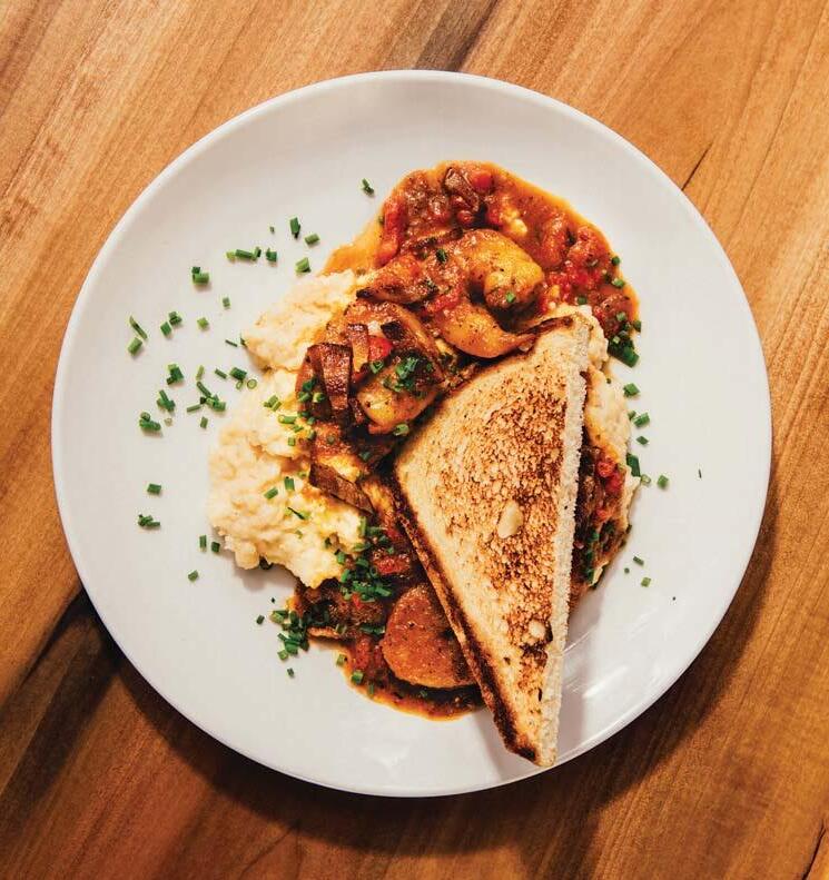 less mimosas or your choice of four brands of bubbly. For gut-busting day-after nourishment, try the two-egg Hoosier Benedict with a pork tenderloin and loads of sausage gravy on a buttery biscuit. Be sure to add some fluffy flapjacks, whether or not you dress them up with cinnamon apples or pecan granola. A la carte eggs, sausage, and toast are available for the purists. 1435 E. 86th St., 317-735-1293, theroostindiana .com/nora V $$