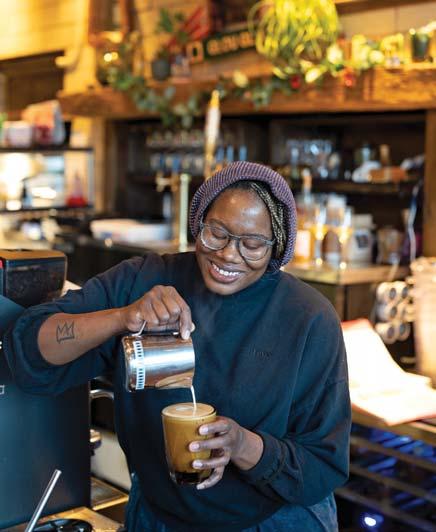 ITALIAN A dark and sleek renovation of the former Shoefly Public House location, this modern-Italian eatery shares DNA with siblings Ambrosia, Maialina, and Blupoint Oyster House—all branches of Indy restaurateur Gino Pizzi’s pasta family. Seared scallops share the dish with little cheese-filled sacchetti dumplings, and the lasagna is a light, mushroomlayered variety sauced with bechamel. The hulking lamb shank served with polenta is a showstopper, though. After dinner, descend the stairs behind the host stand to the basement speakeasy, for some sofa lounging and mixology magic. 122 E. 22nd St., 317-426-2045, boccaindy.com $$$