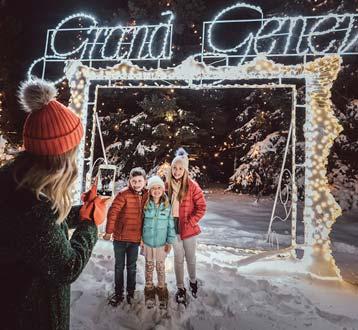 To guarantee a spot on the NHL-size, covered ice rink, book your 90-minute slot ahead at gainbridgefieldhouse.com/ bicentennialunityplaza. Plan to arrive 30 minutes early to rent skates or enjoy a hot cocoa, glass of wine, or beer. Do that holiday shopping afterward; there are no lockers. Park at the Virginia Avenue Garage at the northeast corner of Gainbridge Fieldhouse. That’s the closest covered parking, connected by a sky bridge. Snap a selfie in the mirrored alcove just inside the entrance. Warm up inside the Sphere and enjoy art and history visuals. At loose ends on Christmas Day or New Year’s Day? Head down; it’s open.