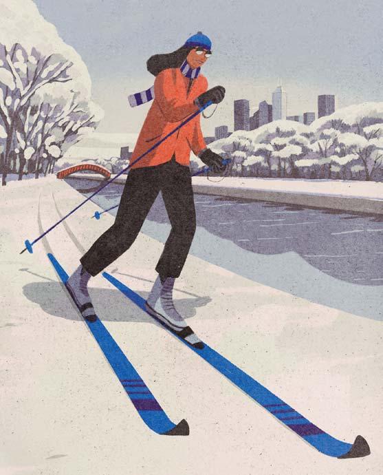 Q : DOES CENTRAL INDIANA OFFER ANY WORTHWHILE CROSS-COUNTRY SKIING OPPORTUNITIES? A: The folks at Rusted Moon Outfitters, a sporting goods store that sits within a snowball’s throw of the White River in Broad Ripple, suggest kicking across the frozen expanses of Eagle Creek Park and Fort Harrison State Park. If you prefer a more oppidan setting, you can tackle the Monon Trail—provided you get there right after snow falls; the city plows it like a regular street. Or try out the Central Canal Towpath, which winds its way through both Butler University and the grounds of the Virginia B. Fairbanks Art & Nature Park at Newfields. If you’d like company during your brisk adventure, Strawtown Koteewi Park in Hamilton County offers a group cross-country skiing and snowshoeing experience on three Saturdays in January. —SAM STALL feet at Indiana’s highest point