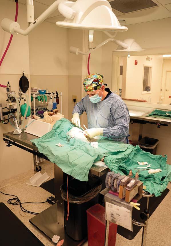 Below, Dr. Jess Gilliatt performs a spay/ neuter procedure at FACE. Inset, Meckhi Patty assists in the operating room.