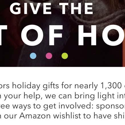 Holiday Gift Drive: Provide toys, clothes, and gift cards for children this holiday season. Find more info at KidsVoiceIN.org/gift-drive