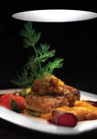 with an upper-level lounge containing the salvaged mahogany bar from The Glass Chimney, anothere fine-dining legend. The food has equal flourish. Lobster bisque with a hunk of tempura-fried meat begins a meal that might include a cowgirl ribeye, a flight of filets, or a domestic wagyu burger. Black-suited servers and well-composed cocktails keep the high-dollar meal running smoothly. 201 W. Main St., Carmel, 317-7400900, anthonyschophouse.com $$$$