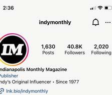 MONTHLY (ISSN 0899-0328) is published monthly ($24 for 12 issues) at 8909 Purdue Rd., Suite 130, Indianapolis, IN 46268. Copyright © 2023 Cincinnati Media, LLC, a subsidiary of Hour Media, LLC, 5750 New King Dr., Ste. 100, Troy, MI 48098. The Indianapolis Magazine. All rights reserved. Reproduction in whole or in part of any text, photograph, or illustration without written permission from the publisher is strictly prohibited. Opinions in the magaine are those of the authors and do not necessarily represent management views. The magazine is not responsible for unsolicited manuscripts and photographs. For subscription orders, address changes or renewals, write to INDIANAPOLIS MONTHLY, 1965 E. Avis Dr., Madison Heights, MI 48071, or call 1-888-6606847. Periodicals postage paid at Indianapolis, Indiana, and additional mailing offices. Postmaster: Please send forms 3579 to INDIANAPOLIS MONTHLY, 1965 E. Avis Dr., Madison Heights, MI 48071. If the Postal Service alerts us that your magazine is undeliverable, we have no further obligation unless we receive a corrected address within one year.
