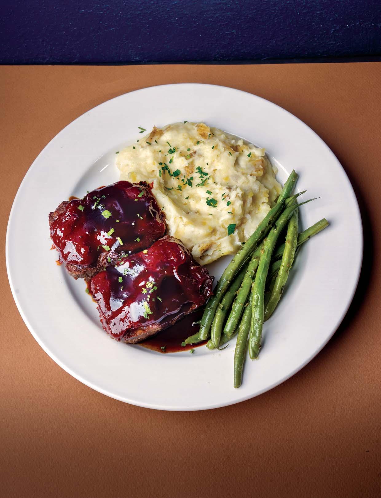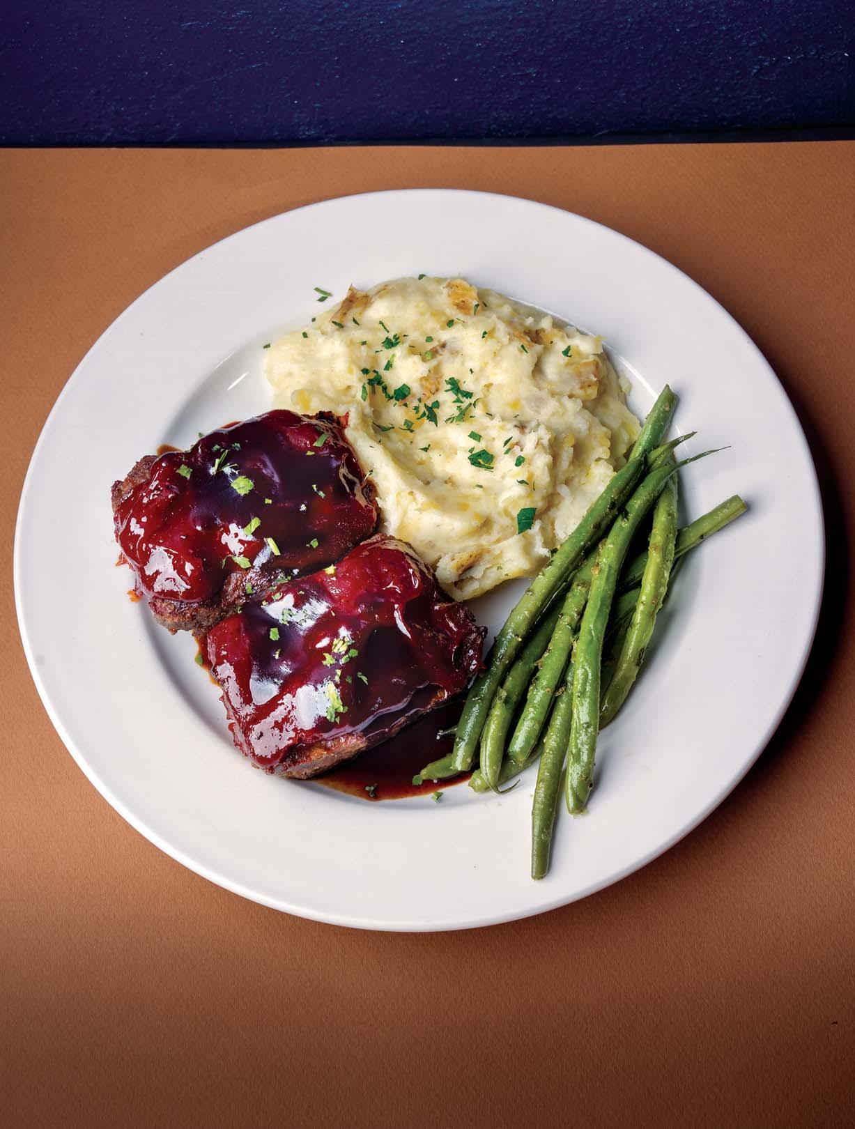 The Steakhouse Meatloaf topped with a smoky double glaze tempts at Carnegie’s in Greenfield. 32 FIRST BITE