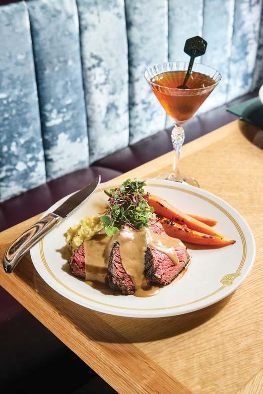 STEAKHOUSE The interior of this swanky heavy hitter along Carmel’s Main Street has the polished gleam of a new Vegas hotel, with an upper-level lounge containing the salvaged mahogany bar from The Glass Chimney, a fine-dining legend. The food has equal flourish. Lobster bisque with a hunk of tempura-fried meat begins a meal that might include a cowgirl ribeye, a flight of filets, or a domestic Wagyu smashburger. Black-suited servers and wellcomposed cocktails keep the high-dollar meal running smoothly. 201 W. Main St., Carmel, 317740-0900, anthonyschophouse.com $$$$