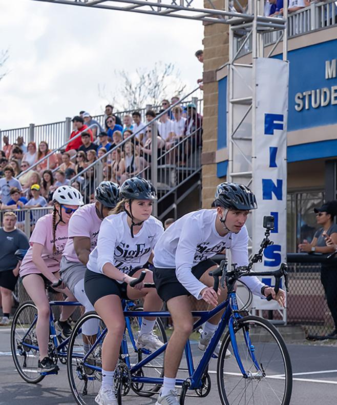 Indiana State University has many rich traditions, such as the Blue and White Homecoming Parade, the Tandem Bike Races, and Sycamore Sync. The campus also provides a variety of opportunities for students to get involved and give back, including Donaghy Day, the MLK Day of Service, Earth Day, State Dance Marathon, and the Pride Day Celebration. The University is home to numerous organizations and clubs whose members explore interests, connect with like-minded peers, and help the local community.