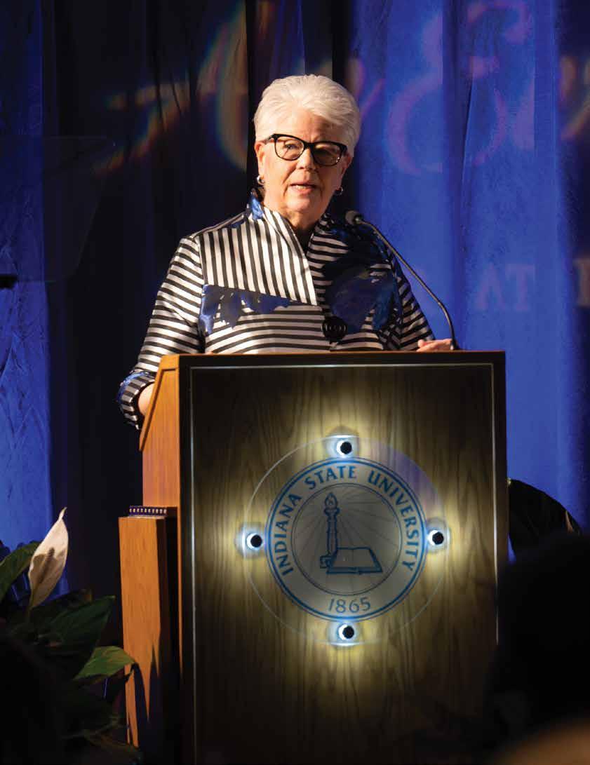 of Dreiser Hall and the largest statefunded capital improvement project in University history, a $66 million renovation of the Bailey College of Engineering and Technology. President Curtis’ efforts to connect with city and county leaders have been equally impactful. She helped secure over $10 million in funding to improve and expand Indiana State’s Early Childhood Education Center, including a $5.8 million grant from Lily Endowment, Inc. This initiative will establish a new state-of-the-art childcare facility to address the lack of high-quality early childhood education programs and care in West Central Indiana.