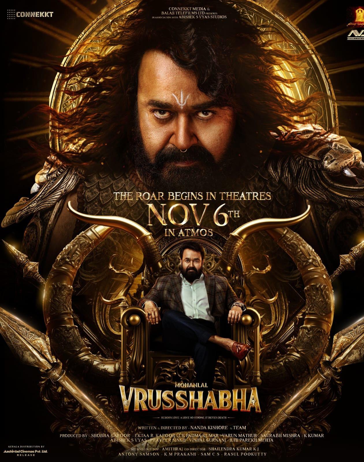 Taking to his X timeline, Mohanlal announced, "The ground shakes. The sky burns. Destiny has chosen its warrior. #Vrusshabha arrives on 6th November! #RoarOfVrusshabha #VrusshabhaOn6thNovember."