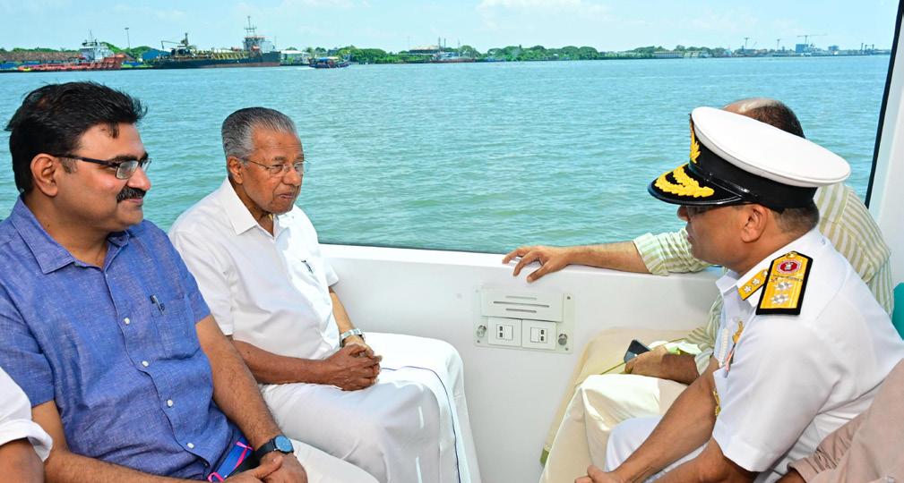 Kochi: Kerala Chief Minister Pinarayi Vijayan travels on the Water Metro after inaugurating its new routes in Kochi on Saturday, October 11, 2025.