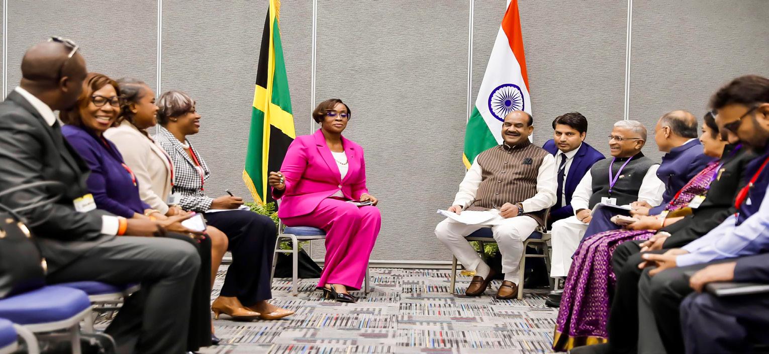 Georgetown: Lok Sabha Speaker Om Birla meets Speaker of the House of Assembly of Jamaica Juliet Holness during the Commonwealth Parliamentary Association (CPA) Conference in Georgetown on Thursday, October 09, 2025.