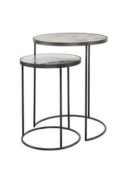 • Lille’s whitewashed solid oak pieces and sleek stainless steel frames.