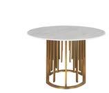 Elevate your dining experience at home with our selection of elegant dining tables. Go for marble for the extra touch of luxury, while ceramic top provides unmatched durability in style. Featured here is the new Kelsey Dining Chair with slim legs in brass colour. Upholstered in a versatile light grey fabric, the chair fits well into any dining setting.