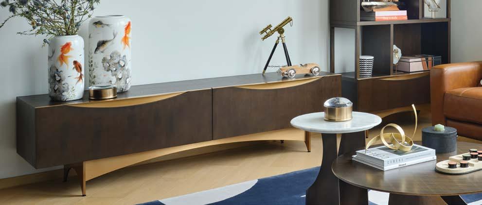 Embrace the much-celebrated Mid Century Modern style with Indigo’s new Barclay Collection. The in-house designed range of casegood pieces provide storage solutions in style. Inspired by Mid Century aesthetics, Barclay features design cues that pay tribute to iconic designs with the curved lines found in the handles and the base. The classic and beautiful combination of dark wood finish and brass coloured stainless steel adds a touch of sophistication and refinement.