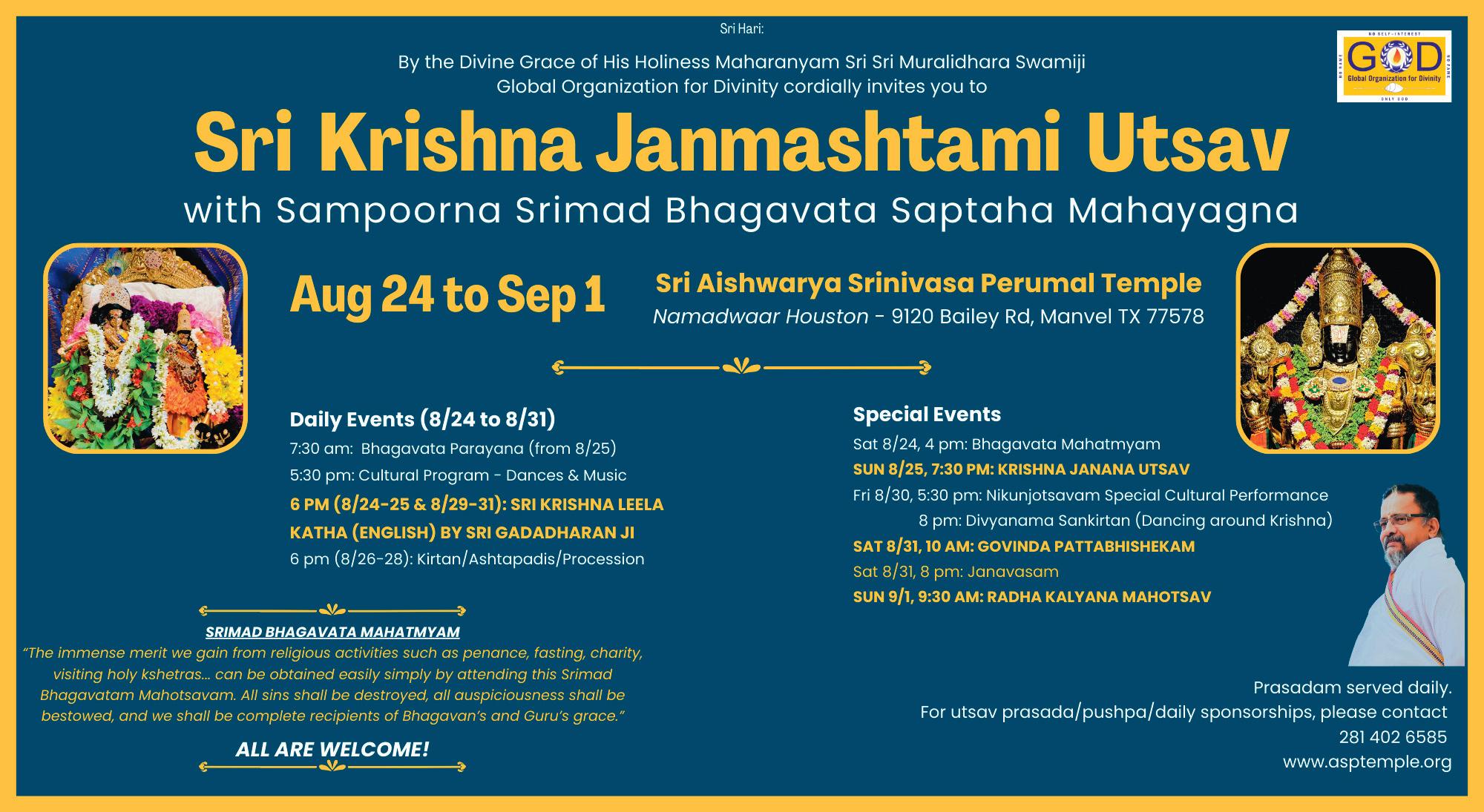 The program is FREE, and dinner Prasadam is served every evening at the conclusion of the program. Kindly do the Free Registration at www.JKYog.org/ Houston. Contacts: Lata Srivatsan: (281) 630-5982 Chaya Lonakadi: (281) 780-4877.