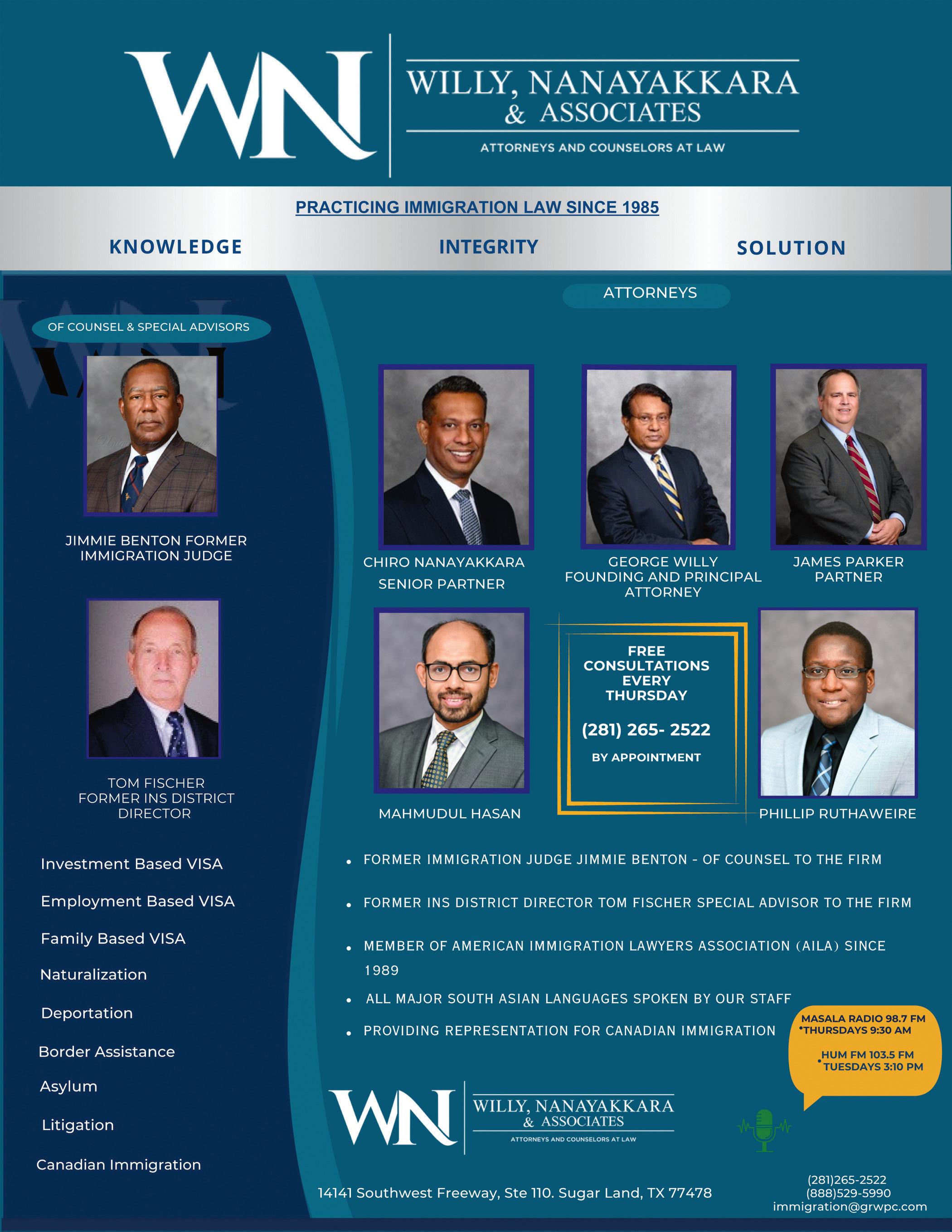 ®All rights reserved. No material herein or portions thereof may be published without the written consent of the publisher. Deadline for advertising and articles is 4 pm on Monday of each week. Please include self-addressed, stamped envelope for return of all unsolicited material. Published at 7457 Harwin Drive, Suite 212, Houston, Texas 77036.Tel:713-789-6397, email: indoamericannews@yahoo.com, website: