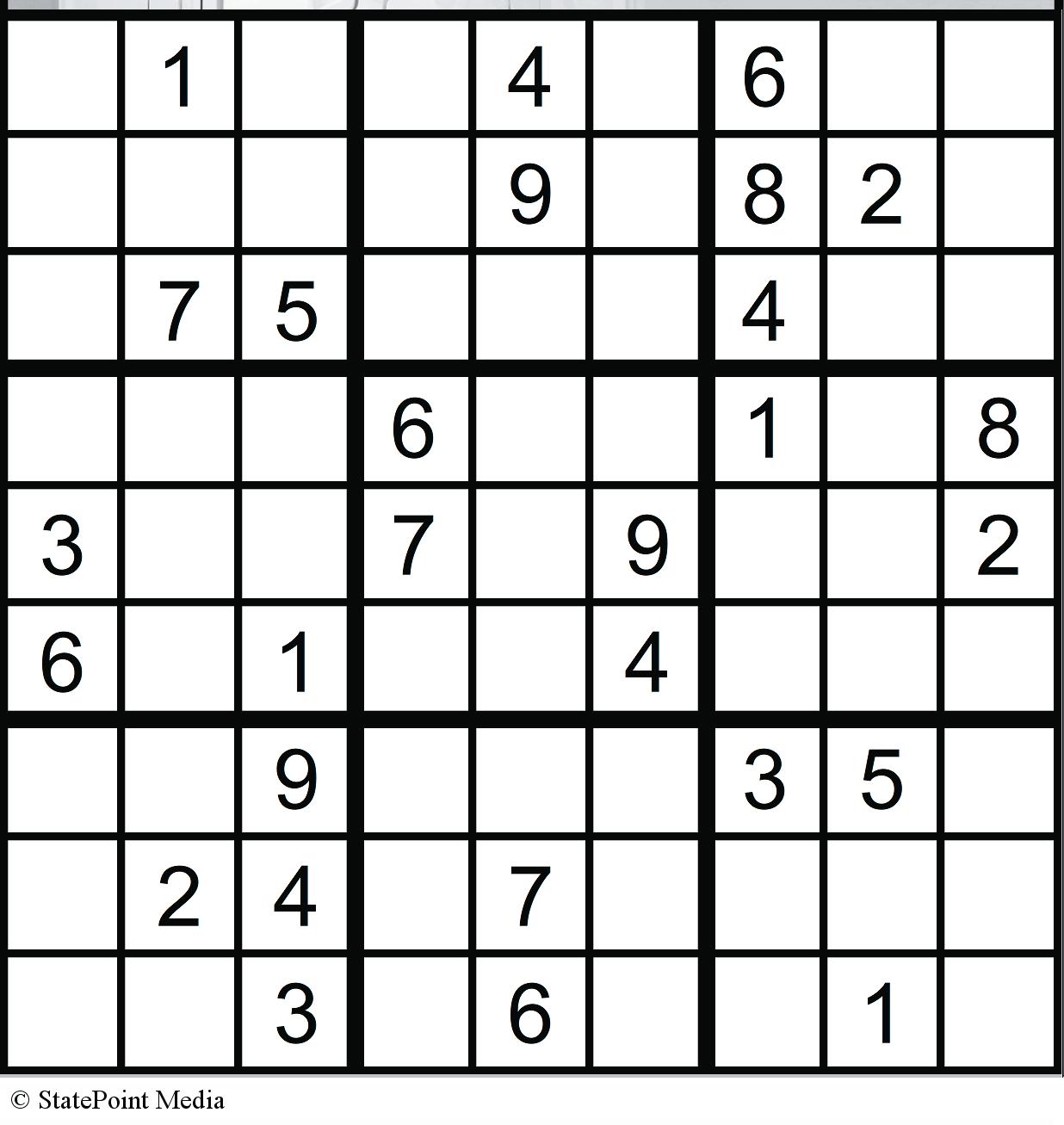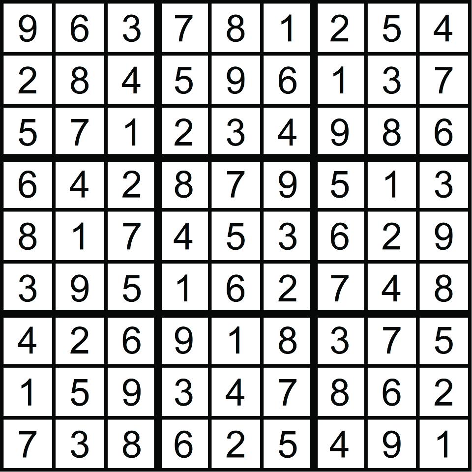 Place a number in the empty boxes in such a way that each row across, each column down and each 9-box square contains all of the numbers from one to nine.