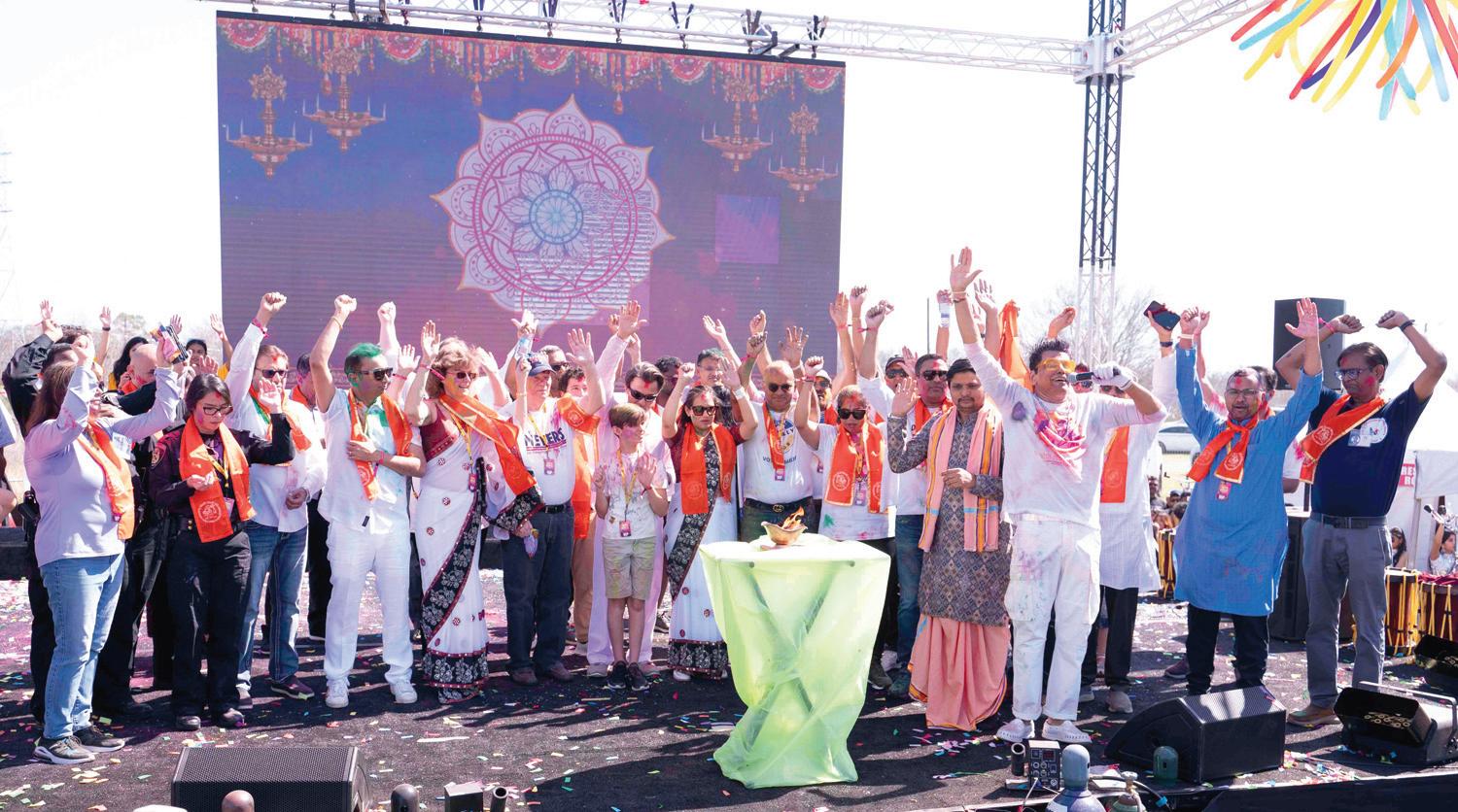 Houston: In the aftermath of Maha Khumbh Mela…Holi revelers witnessed the largest IndoAmerican gathering in Clutch City at HOUSTON HOLI on SAT MAR 1 2025 at BH Ranch presented by Masala Radio 98.7 FM. “The Ranch looked like a colorful Bollywood Set!” exclaimed many while taking pics under a 30 foot entry of cascading mirrored Rajasthani umbrellas and tassels.