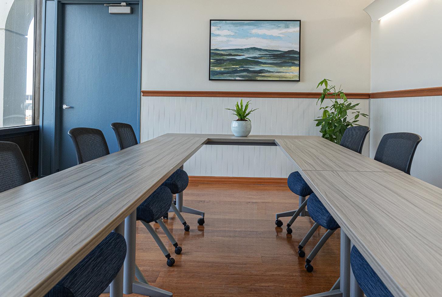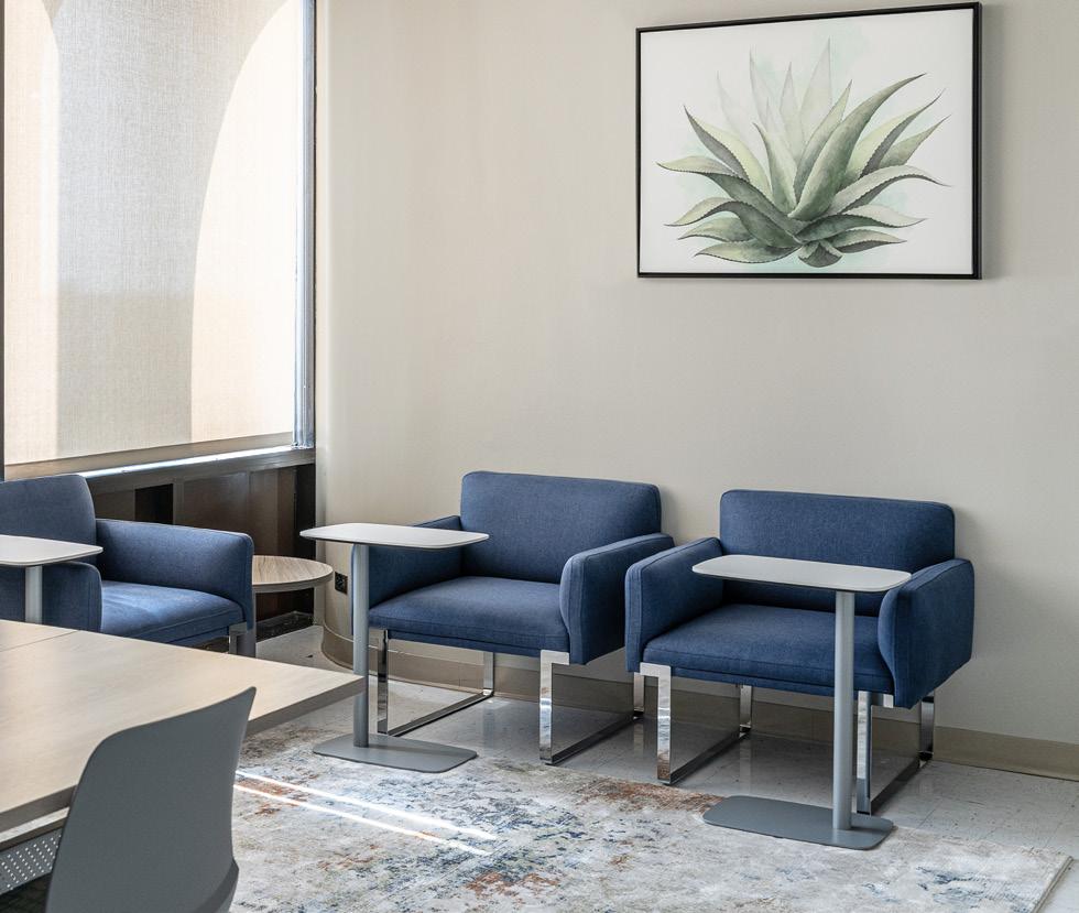 We selected area rugs, art and lighting for the therapy rooms to compliment the furniture. We redesigned the meeting room to function both as a conference room and as a training space. Art enhanced the walls and plants softened the edges. De-escalation rooms were designed and furnished for calming effects. Private offices were furnished as well as touchdown spaces for clinicians are support personnel. The sixth floor offers gorgeous views of the lake and lots of natural light. Aesthetics guided our choices in every space, the corridor links all of the spaces and we made careful artwork selections to make traveling the hallways a pleasant experience visually.