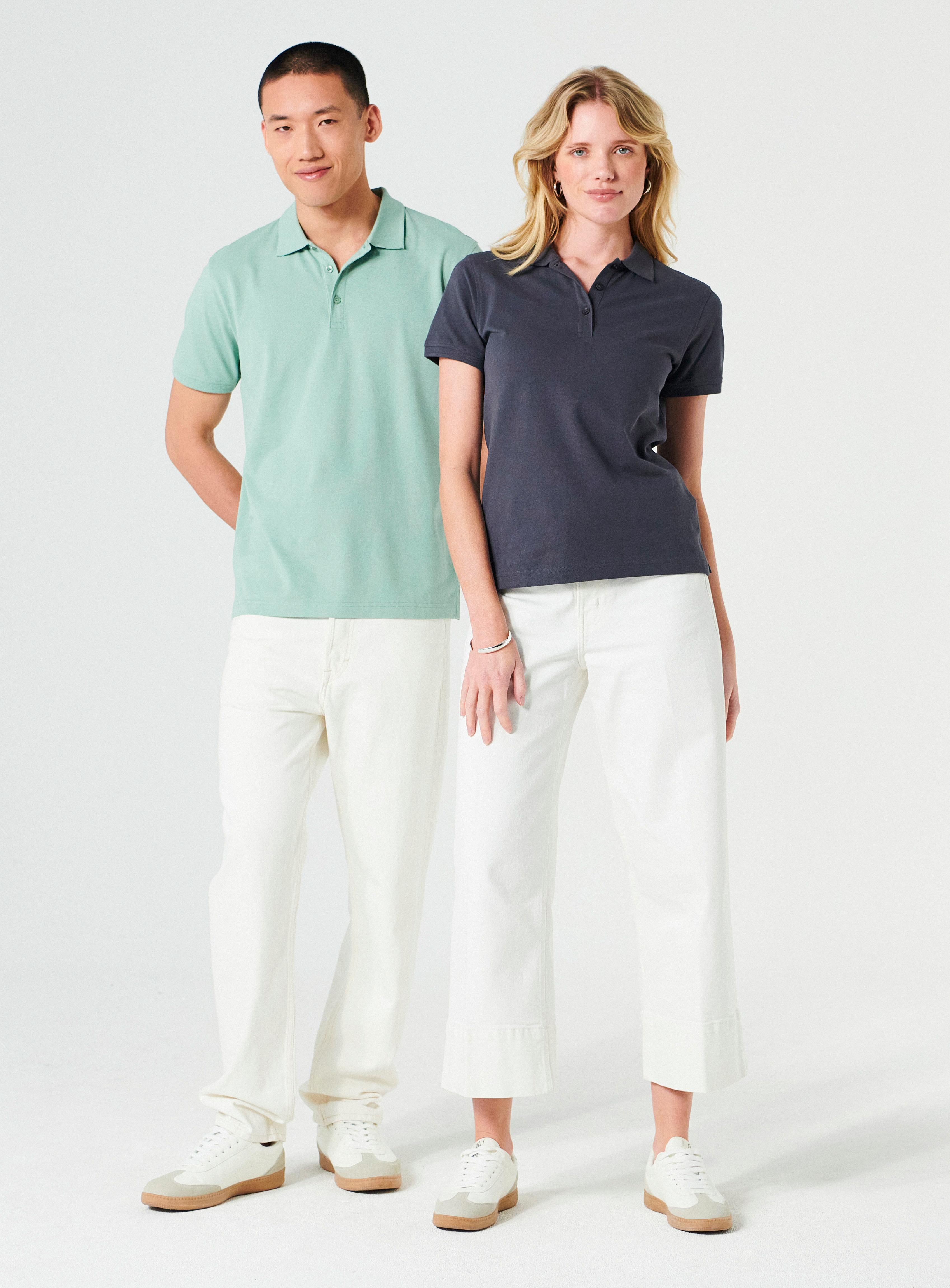 Unser Bestseller in modernem Schnitt, vorgeschrumpfte und ringgesponnene Baumwolle. Doppeltes Kragenbündchen mit Elasthan. Herren ist rundgestrickt, Damen mit Seitennähten.