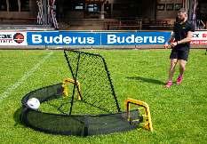 EIN HILFSMITTEL FÜR TORHÜTER: Trainiere deine Tauchgänge mit dem Tunnel und deine Ballannahme mit dem Rebounder.