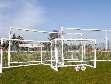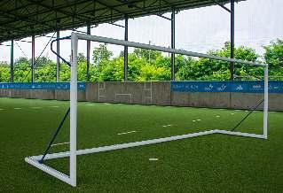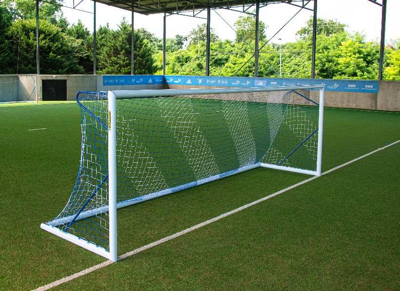 Das einzige Mini-Tor der Welt, das sich auf vier verschiedene Größen mit derselben Bodenstruktur, demselben Netz und denselben hinteren Torbögen zusammenstellen lässt.