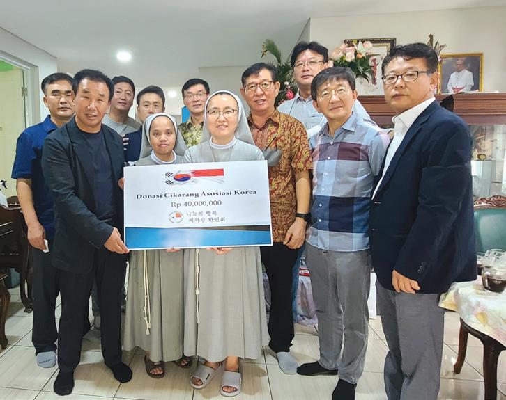 지금은 한센인 마을에서 의료봉사를 매달 1회 실시하고, 한센인 마을에 한곳, 인근마을에 한곳 에서 월요일에서 금요일까지 공부방을 운영하여 한센인 가족들이 희망을 품고 살 수 있도록 선한 영향력을 펼치고 있다. 최영미 수상자는 “앞으 로도 그들의 손을 놓지 않고 지속적으로 동행할 것” 이라고 소감을 밝혔다. 자랑스러운 한인상 수상자에게는 2천만루피아 를 전달하였고 한인회도 뜻을 함께 하는 의미로 지속적으로 후원할 예정이다. 만찬 후 이어지는 행운권 추첨과 트롯 가수 3인 방 서지오, 소유미, 지원이의 열정적이고 혼신을 다한 무대는 가수와 듣는 관객이 하나로 호흡하 며 화기애애한 분위기를 이어갔다.