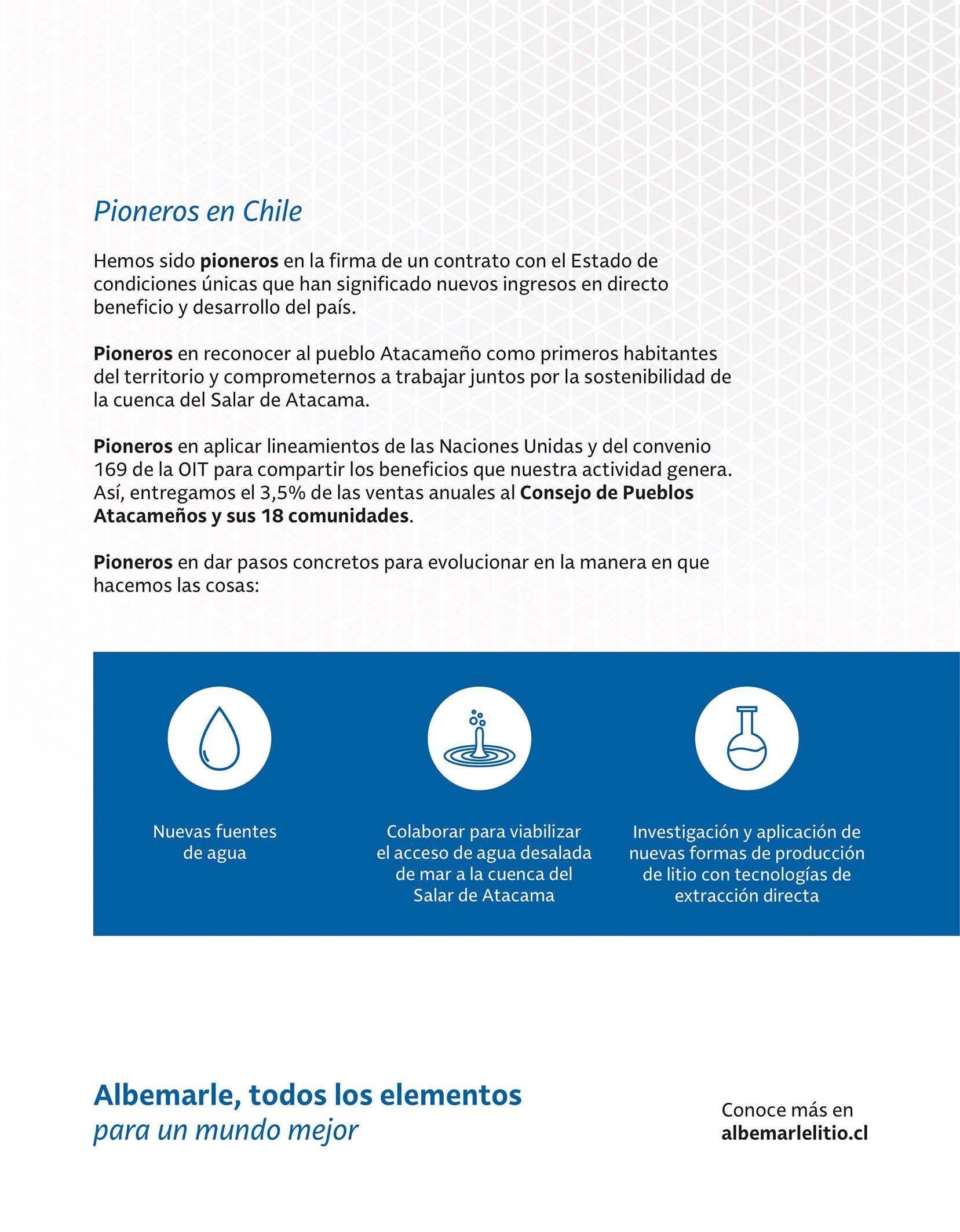 Hidronor www.hidronor.cl 10-Tapa 4 IFX Networks www.ifxnetworks.com Tapa 3 InduAmbiente www.induambiente.com 6-7-61-128 Innergex www.innergex.com/es 62-63 Inquinat www.inquinat.cl 97 Isuvent www.isuvent.com 39 Jaime Illanes & Asociados www.jaimeillanes.cl 87 KSB www.ksb.com/es-cl 95 Orbe Consultores www.orbeconsultores.cl 47 Pares&Alvarez www.pya.cl 80 PGIC www.pgic.cl 81 Proterm www.proterm.cl 75 Recycla www.recycla.cl 127 Resiter www.resiter.com 69 Séché Group www.sechegroup.cl 98 SGA www.sgasa.cl 1 SGS www.sgs.cl 107 Simtech www.simtech.cl 33-52 SMF Servicios www.mfservicios.com 26 Solenis www.solenis.com 12 Soltex www.soltex.cl 31 SQM www.sqm.com 3 Teck www.teck.com/chile 35 TSG www.tsgenvironmental.com 59 WEG www.weg.net/cl 91 Zubimed www.zubimed.cl 111