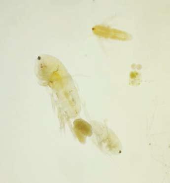 Pareja de copépodos, Artemia y rotífero.
