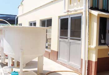 Se mantiene una cepa del rotífero Brachionus sp. para iniciar los cultivos, estos se producen en tanques cilindrocónicos de 600 y 1200 l (fig. 3), la densidad de siembra es de aproximadamente 30-40 rotíferos ml-1. La microalga utilizada es N. oculata a una densidad de 15 a 20 x 106 células ml-1 complementando de ser necesario con levadura de pan (Saccharomyces cerevisiae) la cual se da en raciones de 0.5 gramos por cada millón de rotíferos. Los tanques de 600 y 1200 l se llenan a una cuarta parte de su capacidad con la microalga concentrada subiendo el nivel diariamente con microalga, después de 4 días alcanzan una densidad de 150-250 rotíferos ml-1 y se cosechan total o parcialmente de acuerdo a las necesidades diarias de las larvas a alimentar o bien, para sembrar otro tanque con rotíferos, la cosecha se realiza con una bolsa de luz de malla de 40 µ.