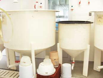 Fig.3. Tanques de 600 y 1200 l para cultivar rotíferos y copépodos.