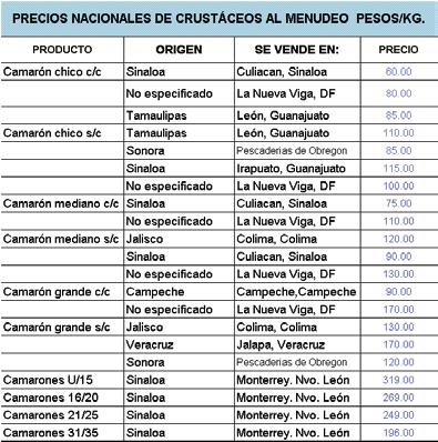 BOLETIN DE PRECIOS DE CAMARON Y TILAPIA