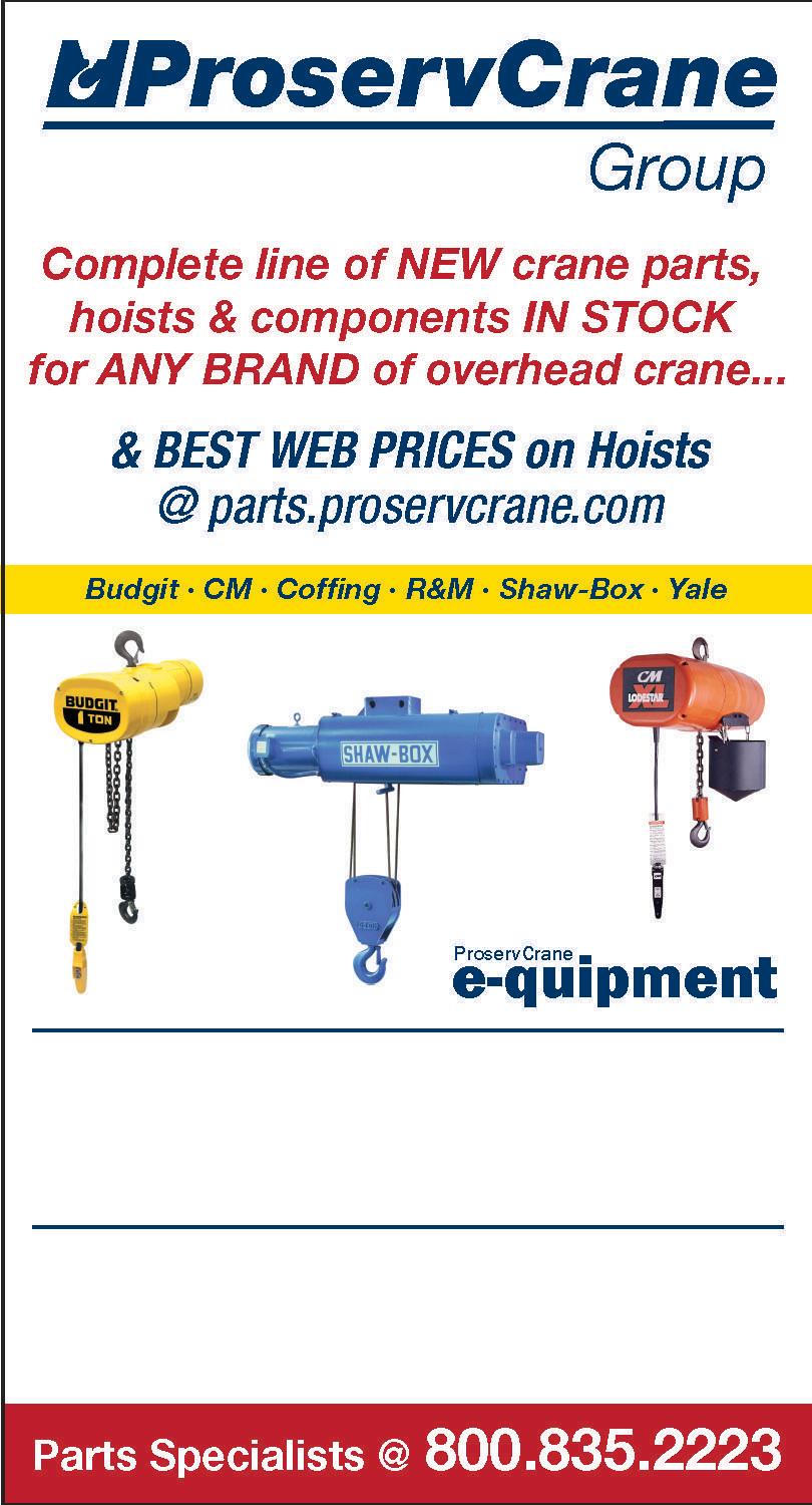 October 6, 2022 FOR SALE10 CURRENT & PAST ISSUES - VISIT IMPMAGAZINE.COM HANDLING EQUIPMENT WANTED Melmor Associates, Inc. 840 Ann Avenue – PO Box 511 – Niles, OH Phone: 330-652-1784 – Fax: 330-652-1667 USED AND NEW MATERIAL HANDING EQUIPMENT • Wire Baskets • Hoists • Pallet Racking • Conveyor • Rolling Ladders • Steel Containers • Self-Dumping Hoppers • Shop Pans • Warehouse Carts • Plastic Containers Contact: ROW ELECTRICAL EQPT. 800-248-4479 • FAX: 419-244-8887 E-mail: sales@rowelectrical.com Website: rowelectrical.com • AC & DC Motors • Transformers ELECTRIC MOTORS CONTROLS • TRANSFORMERS – Bought and Sold –We Sell Reconditioned or “Electrically O.K.” We Will Also Buy Your Spares! • Disconnect Switches • AC Motor Starters ONLY $5,700 Small And Mighty Accurate, Stable and Fast Weight Processing • Single & Multi Channel Weight Processors PLC Plug-In Weight Modules • Load Cell & Scales • Dynamic Checkweighers Powerful, Ultra Fast 8. Highly Accurate Weight Processing: even in systems plagued with mechanical vibrations Tiny Footprint: At just 2”x3”x2”, takes up virtually no Color Touch-screen interface: intuitive, easy to set-up, use Weightless Calibration: simple 1-button calibration, no NEW! Design for OEM Machine Our Core Bussiness is Buying and Selling HVACR Equipment, Parts & Compressors. New, Surplus, & Used, in the Global Air Conditioning Markets. send your updated surplus list to lazcocorp@gmail.com Send Your Updated Surplus llst to Lazcocorp@gmail.com Save Money - www.lazcocorp.com for current ofters. TURN YOUR SURPLUS & USED HVACR EQUIPMENT INTO WORKING CAPITAL Lazco Corp. BUYS & SELLS Surplus ... Air Handlers Gas Paks Condensing Units Compressors Contact Steve Lazar • Tel: 480-265-9980 Lazcocorp@gmail.com • www.lazcocorp.com Do You have Industrial Equipment to Sell or Trade? Call IMP Today @ 800-323-1818 • Forklifts • Coil Tractors • Railcar Movers • Yard Tractors • Container Handlers & More To See a Complete List of Our Inventory,Visit Our New Online Showroom at www.HKEQUIPMENT.com 412-490-5311 Fax: 412-494-0975 CAPACITIES FROM 3,500 TO 110,000 LBS. New Crane Special 5 Ton, Top Running, 30’ Span Starting At-$ 19,995.00