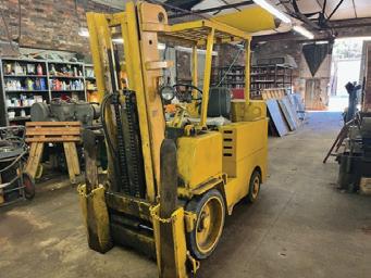 TURRICK LATHE- NO 4, NO 1 A • HISEY WOLF DRILL SHARPENER J&H SURFACE GRINDER • FOSDICK M.T. CO DRILL PRESS CINCINNATI BICKFORD DRILL PRESS BURGM ASTER 2 BR TURRET DRILL PRESS VAN NORM AN MILLING MACHINE (HORIZONTAL OR VERTICAL) CINCINNATI MILLING MACHINE • ACMA GANG DRILL MODEL 42 AIR COMPRESSOR • PACIFIC 10’ 1 / 4” PRESS BRAKE PORTACOOL A/C UNIT • 100 TON HYD PRESS (SHOP MADE) (2) MARVEL POWER HACKSAW (1 W/ AUTOFEED) MILITARY FORKLIFT (12,300) DSL- NEEDS BRAKES 662 HRS LEBLOND LATHE 10’ • BATTERY POWER UNIT TORCH • CINCINNATI HORIZONTAL MILL NO 2L MILLERMATIC 250 WIRE WELDER MILLER MODEL 20 WATER COOLED SPOT WELDER- SINGLE PHASE THERMO DYNAMICS PLASMA CUTTER-CUTS UP TO 1” STEEL MILLER DIALAR HF, STICK & TIG WELDER BLUE M OVEN • NEW 1 /2 HP MOTORS HOLSFELT BENDER • CYCLONE SANDBLASTER CABINET STRIPPIT PUNCH PRESS UP TO 1 /8” CRAFTSM AN 14” WOOD BANDSAW-SINGLE PHASE DELTA BELT & DISC SANDER • ROCKWELL METAL BAND SAW BUDGI T 2 3-PHASE ELECTRIC CHAIN HOIST CIRCLE BENDER UP TO 1” TUBING, 2” FLAT HYD POWER PACK-3 PH • WEBB STEEL WORKER YALE FORKLIFT • CLARK FORKLIFT • STEEL RACKS DUALL POWER BAND SAW- AUTO FEED CUTOFF SAW • (2) BELCHAR SCREW MACHINES GORTON MILL MACHINES • DUVALL MILL MACHINES TRW STUD WELDER • HORIZONTAL SURFACE GRINDER ERICO STUD WELDER & STICK WELDER ES1500 MILLER TIG WELDER ATTACHMENT