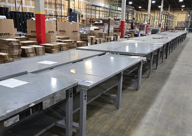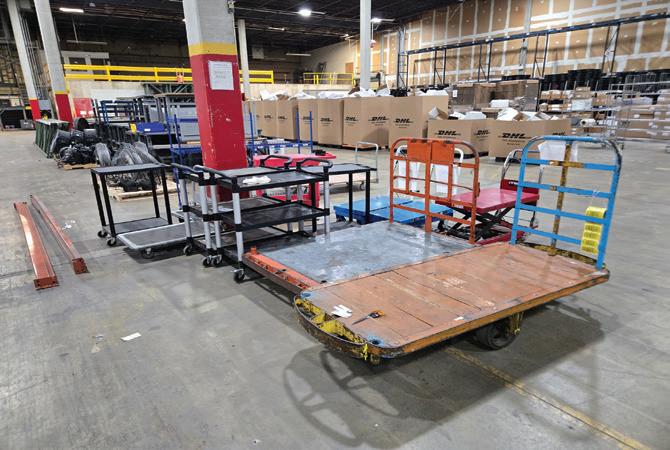 Approximately 100 Various Stainless Steel Rolling Racks, Warehouse Carts, Lifting Carts, Hundreds and Hundreds of New Cardboard Boxes of Various Sizes, Industrial Stretch-Wrap Machine, Shipping & Packing Supplies, Box Organizing Racks, Workstations & Work Benches, Pallet Jacks, Two Dozen Warehouse Fans, Plastic & Wooden Pallets (both new & used), MAGNUM Electric Floor Cleaner with Battery Charger, COGAN Safety Rails, Traffic Pylons, Flat Screen TVs, Office Cubicles, Office Desks & Fancy Executive Desks, Rolling Chairs & Waiting Room Chairs, Two Board Rooms with Tables & Fancy Rolling Chairs, Book Shelves, Dozens and Dozens of Computer Monitors, Computer Supplies & Accessories, Display Flags from the Various Nations of Former Employees, Nice Framed Office Artwork, Steel Employee Lockers, Locker Room Benches, Large Commercial Color Copier, 4-Top Cafeteria Tables with Built-In Stools, Stainless Steel Prep Tables, Microwaves & Refrigerators, 2-Drawer Steel File Cabinets, Very Large VOIP Phone System, Waiting Room Furniture, and much more