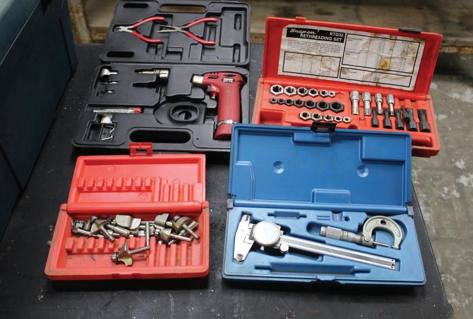 The tool comes with adjustable targets for sheaves of different thicknesses.