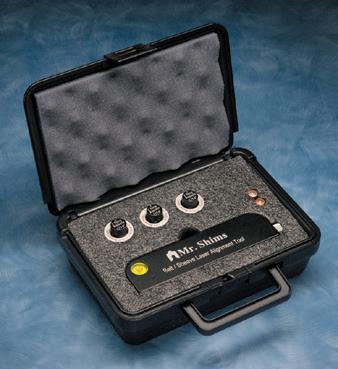 Technical Specs Mr. Shims Green and Red Laser Alignment Tools Laser class: 2 Power out: <1mW Laser Wavelength: 635 - 670 mm Sheave Diameters: 2.5” (60 mm) to 2.5’ (770 mm) Operating Distance: 32 feet (10 meters) Battery Power: 2 ea size “AAA Batteries” (8 hrs) Pulley Alignment Tool: W x L x D: 1-3/4” x 6-1/2” x 5/8” (45 mm x 165 mm x 16 mm) Target Dimensions: 1-1/4” diameter x 1” lenght Weight of Laser Tool: 12 oz (4 kg) Housing / Target: High Grade Anodized Aluminum Targets: Quantity - 3 adjustable over 5/8” (16 mm) Mr. Shims Green Laser Alignment Tool comes with adjustable targets for handling sheaves of different thicknesses. The tool and targets come in this compact, easy to carry tool kit.