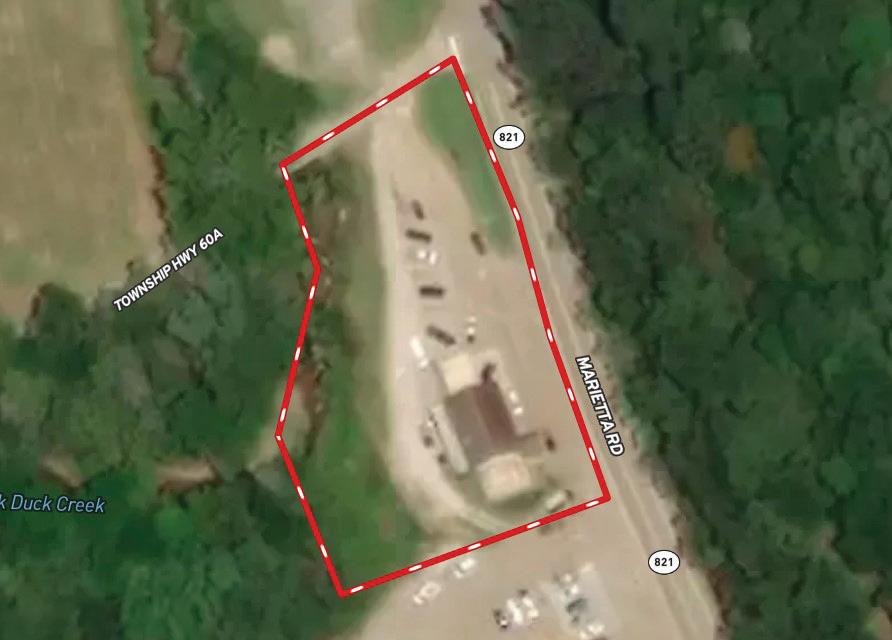 OPPORTUNITY KNOCKS w/ this exceptional offering of commercial real estate. These 2 lots consisting of 1.19+/- acres are located in a HIGH traffic area right along St. Rt. 821, less than 1 mile from I-77, and located right next to the popular eatery, Patty’s Place Restaurant. Property is currently being used as a used car dealership and small service center, but there are endless possibilities, depending on your needs. This property has approximately 300 feet of frontage on 821, and has a fully graveled parking lot with a 32’ x 48’ shop w/ 3 service bays. The well insulated building has a new roof (2022), a newer furnace, a bathroom, and a build-on office area. The garage doors are 12’ tall and 10’ wide. On each side of the building, there are 2 car-ports (which will be sold separately), but one bay is concreted complete with a drain where Don would wash the vehicles he sold. Keep this property as a used car dealership and auto repair business, or bring your ideas to the auction. This property is exceptional. Opportunity Knocks!!!